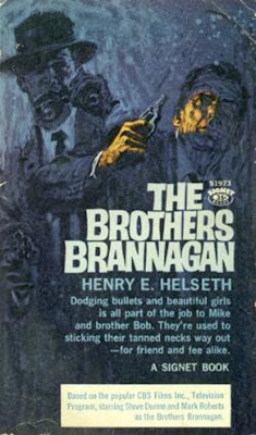 Years later when I was in high school, I ran across a used copy of the TV tie-in novel based on the series (it’s amazing to think that a low-budget syndicated show could get a tie-in novel from a major paperback publisher like Signet, but it wasn’t that uncommon back then), titled, appropriately enough, THE BROTHERS BRANNAGAN and written by one Henry E. Helseth. Helseth doesn’t seem to have been very prolific. He has one other TV tie-in to his credit, a novel based on the series THIS MAN DAWSON (which I don’t think I ever saw) and a mystery novel from the late Forties. I don’t remember anything about his Brothers Brannagan book except that I read it and wasn’t impressed by it.